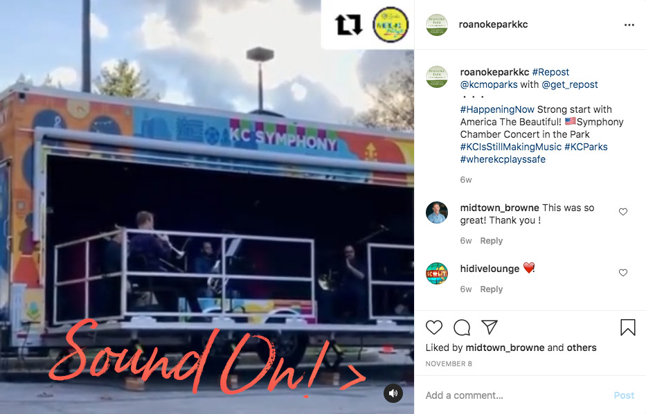Roanoke Park had a great turnout for the KC Symphony's brass musicians in the Mobile Music Box on a Sunday afternoon. Beautiful weather and skies added to the ensemble. Thanks to KC Parks and the Symphony for making this happen.