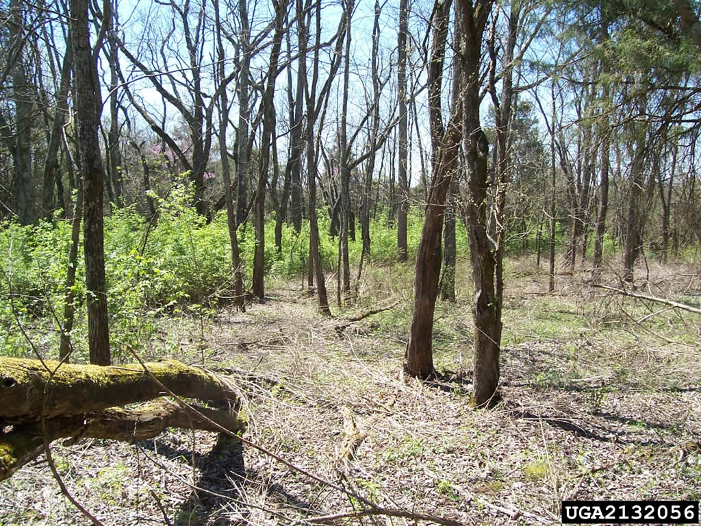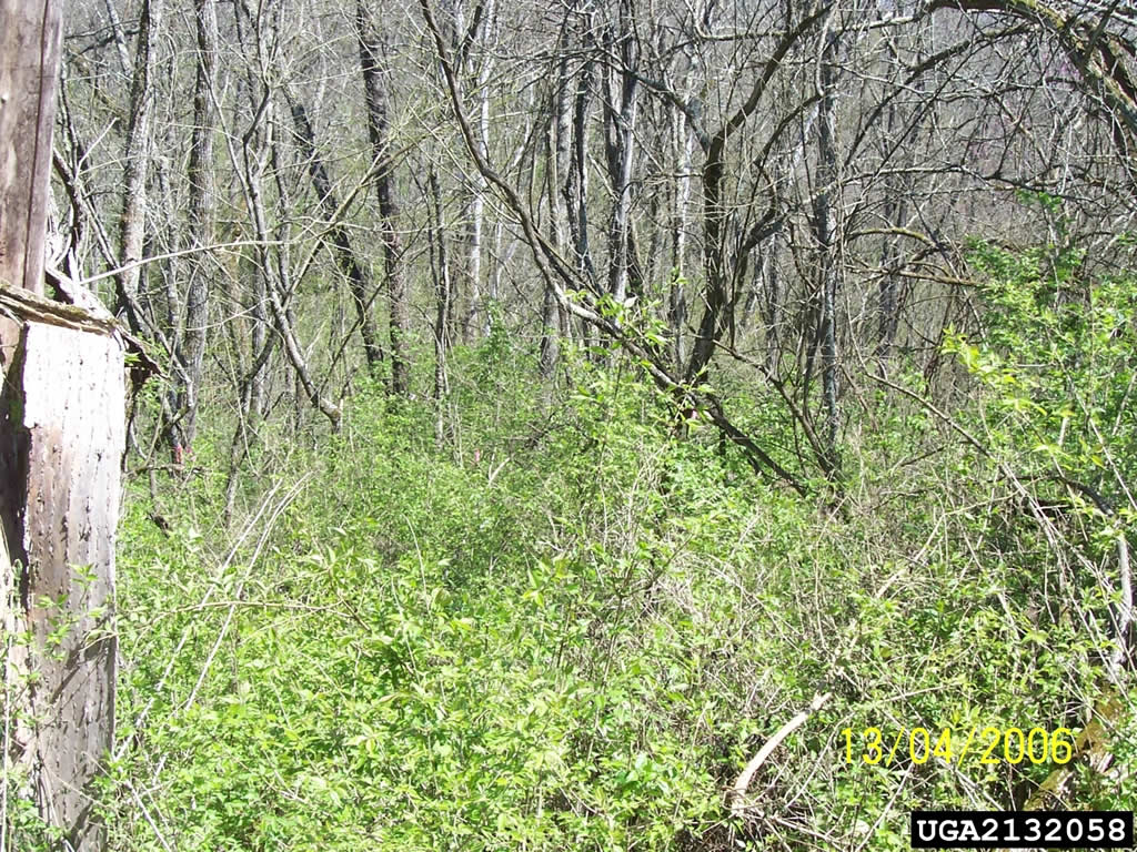 Left unchecked, this plant has the capacity to produce a monoculture, meaning large stands or thickets where nearly the only plant growing is bush honeysuckle. It kills the native vegetation, depriving native insect and animal life of their homes and food sources. It manages this with a combination of a long growing season (it leafs out earlier than native plants and stays green longer) and allelopathy (it exudes biochemicals into the soil that inhibit the germination of seeds and growth of competing plants). Without the pests, diseases and fungi of it's native territory to keep it in check, bush honeysuckle is able to run wild. Research has shown that native tree seedlings are unable to get started within a bush honeysuckle stand. With no young seedlings to take their place, as older trees die the area is eventually taken over by bush honeysuckle.
